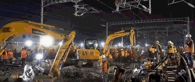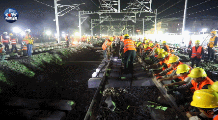 (1500多人同時施工,100多台大小機械轟鳴運作,9小時就完成福建南三龍鐵路龍巖火車站改造,對接絲毫不差。)