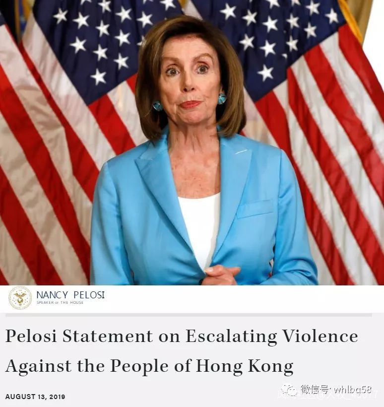 美國眾議院議長佩洛西在這次香港騷亂中扮演了極其不光彩的角色,是香港騷亂最大的支持者。之前她曾多次對香港騷亂妄加評論,更在關鍵時刻發表聲明公開支持香港騷亂。華盛頓時間13日,在香港發生暴徒圍毆內地居民和內地媒體記者後,佩洛西再次發表聲明,對香港騷亂表示支持。