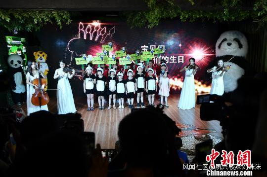 身穿熊貓圖案衣服的小朋友唱響生日快樂歌。 駱雲飛 攝