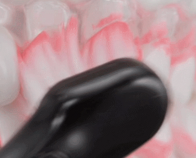 下圖是松下用仿製的類似垂直襬動原理的電動牙刷刷牙齦溝: