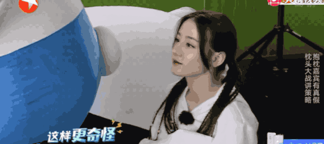 當時,熱巴和劉憲華在執行保護抱枕的任務,劉憲華提議自己穿上玩偶裝,讓熱巴幫忙把抱枕塞進衣服裏以防被人搶走。