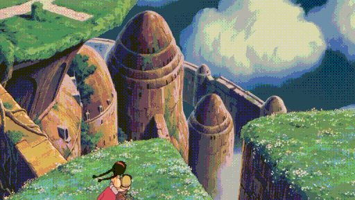 你可能會説,用開放合成難道不是因為省錢省事省力氣嗎?又或者只是技術限制下的權宜之計?確實,這也是一部分原因,但如果僅僅是這樣的話也就沒什麼可説的了。而且,宮崎駿也不是唯一青睞開放合成的人,他之所以能成為一個典範,還因為他對開放合成的應用有着他的獨到之處。其中一個最為顯著的獨到之處就是,宮崎駿的開放合成總是與飛行的主題結合在一起。
