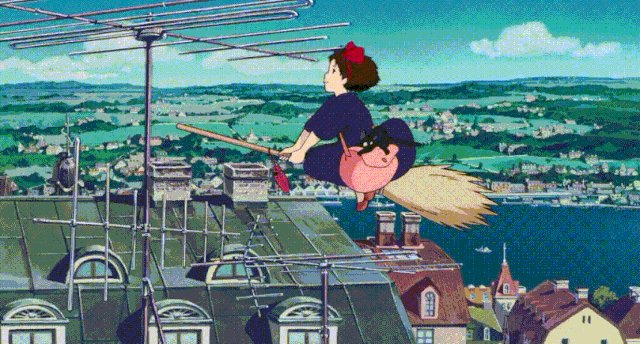 另外,宮崎駿也十分熱衷於讓角色不借助複雜的機械,僅憑自然之力和源自身體的力量去飛行,比如**《風之谷》和《天空之城》中靠風來運行的滑翔機、《魔女宅急便》中靠魔法發動的掃帚和靠人力驅動的自行飛車,《龍貓》**中可以承載龍貓龐大身軀的旋轉陀螺等等。