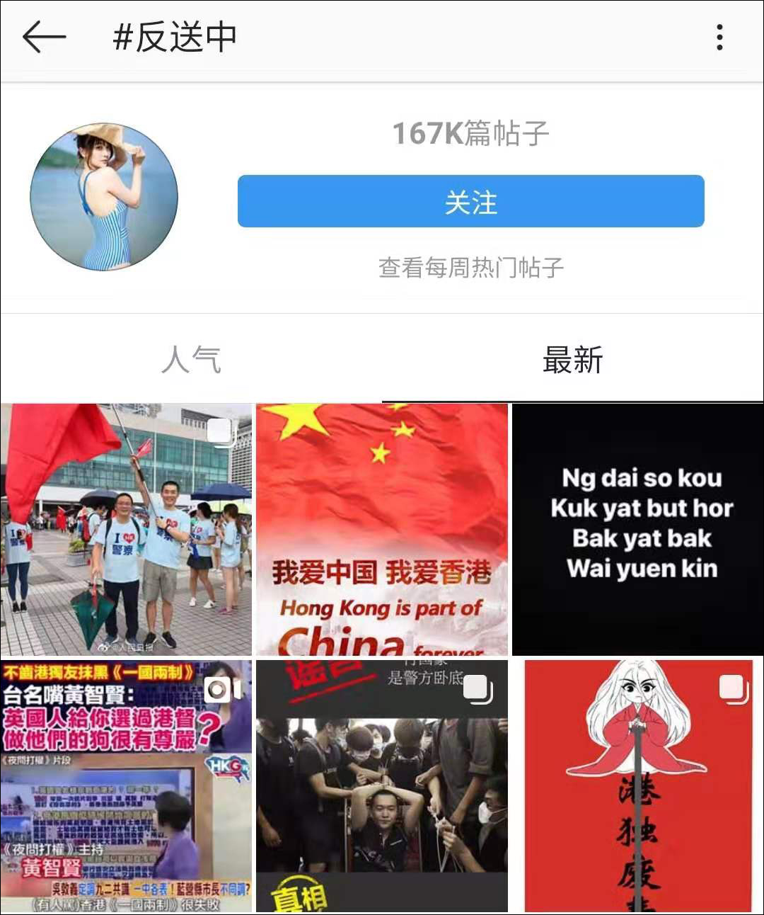 出征網友們眾志成城,齊心協力,成功將“反暴力,救香港”和“五星紅旗”兩個帖子頂到了這個話題最前面!