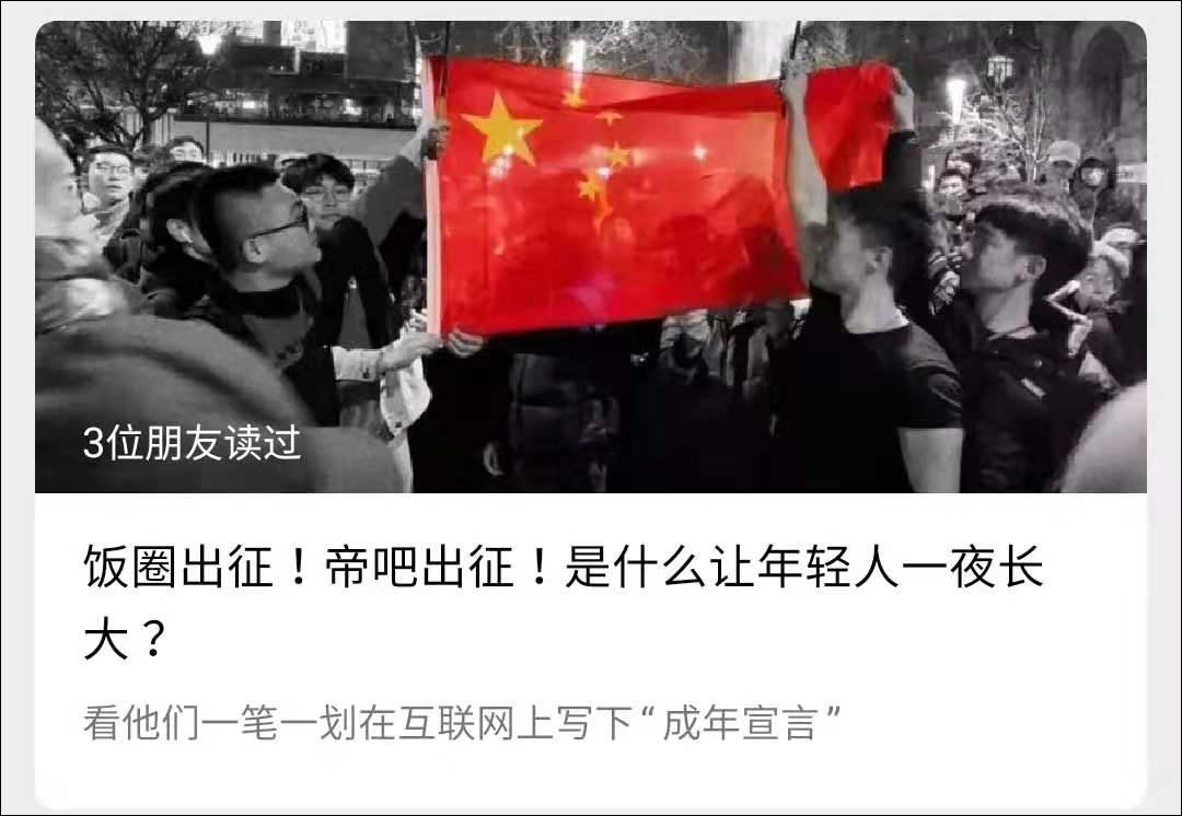 長安劍問到:“飯圈出征!帝吧出征!是什麼讓年輕人一夜長大?”