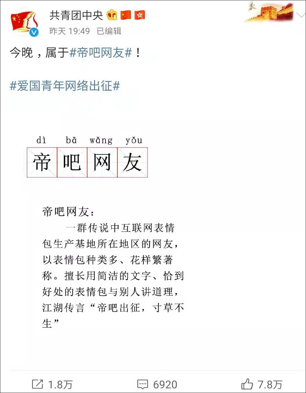 全網戰鬥力最強的帝吧網友就在這樣的背景下登場了!