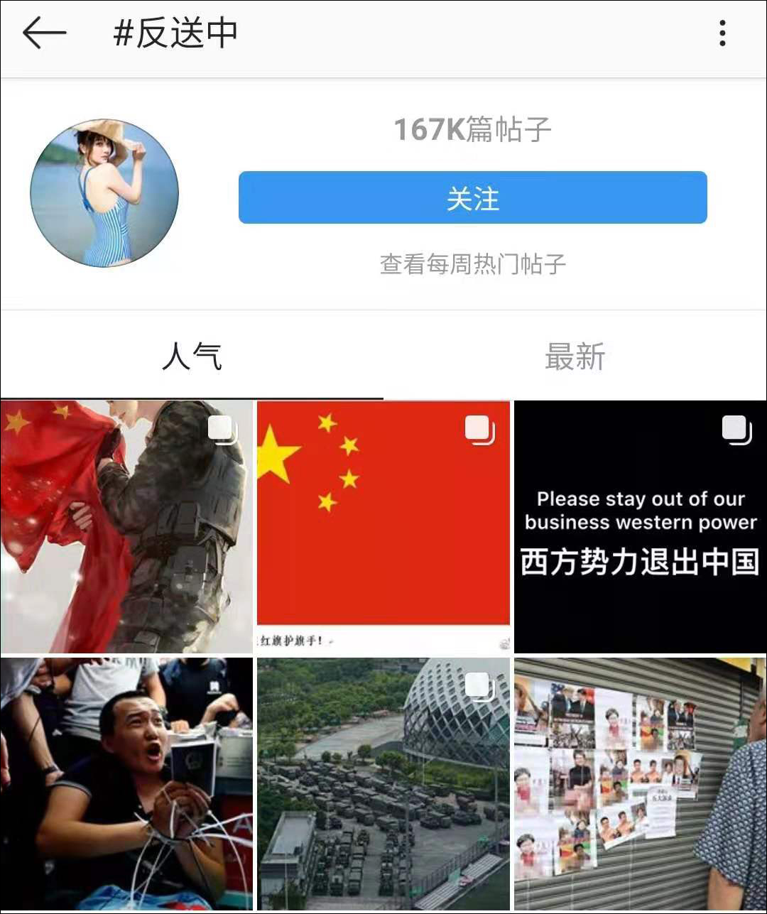 與此同時,出征網友們還發現,他們刷的五星紅旗的照片,被港毒廢青們給舉報刪掉了!