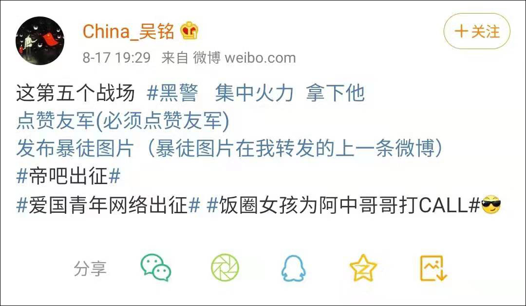 為了支援這些愛國明星,面對自己的偶像被“下手”,各家飯圈女孩氣得夠嗆,於是在8月14日晚上聯合出征支援愛國明星,教訓這些港毒廢青。