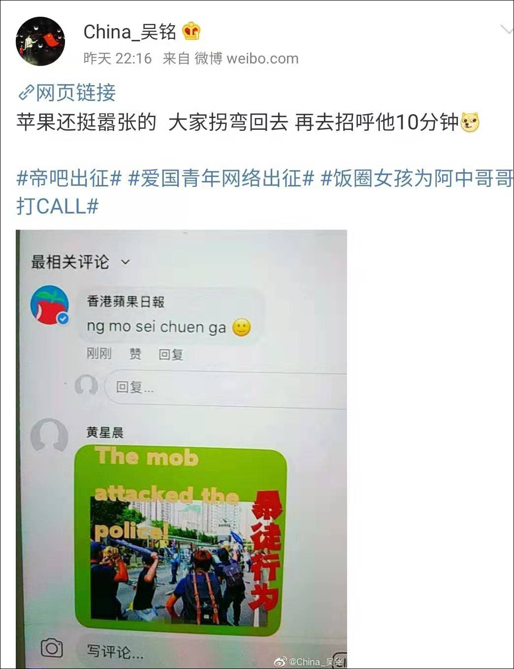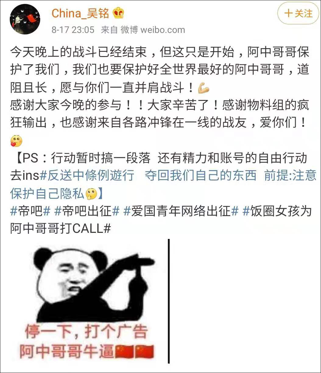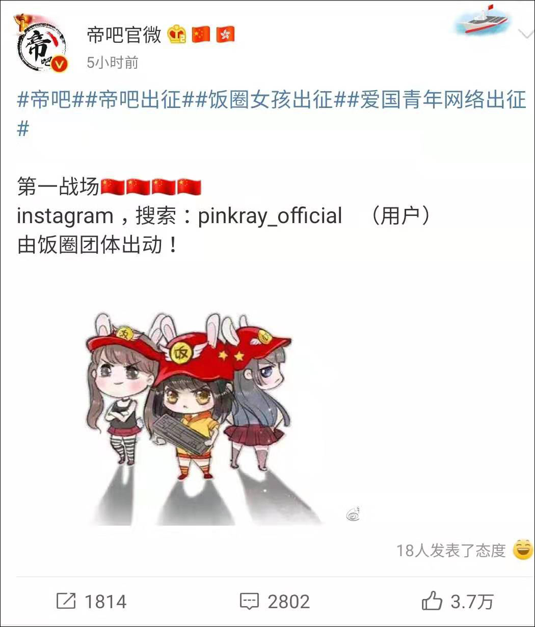 “飯圈女孩”為本次出征開了一個好頭後,緊接着第二支部隊“帝吧網友”也加入了戰鬥。