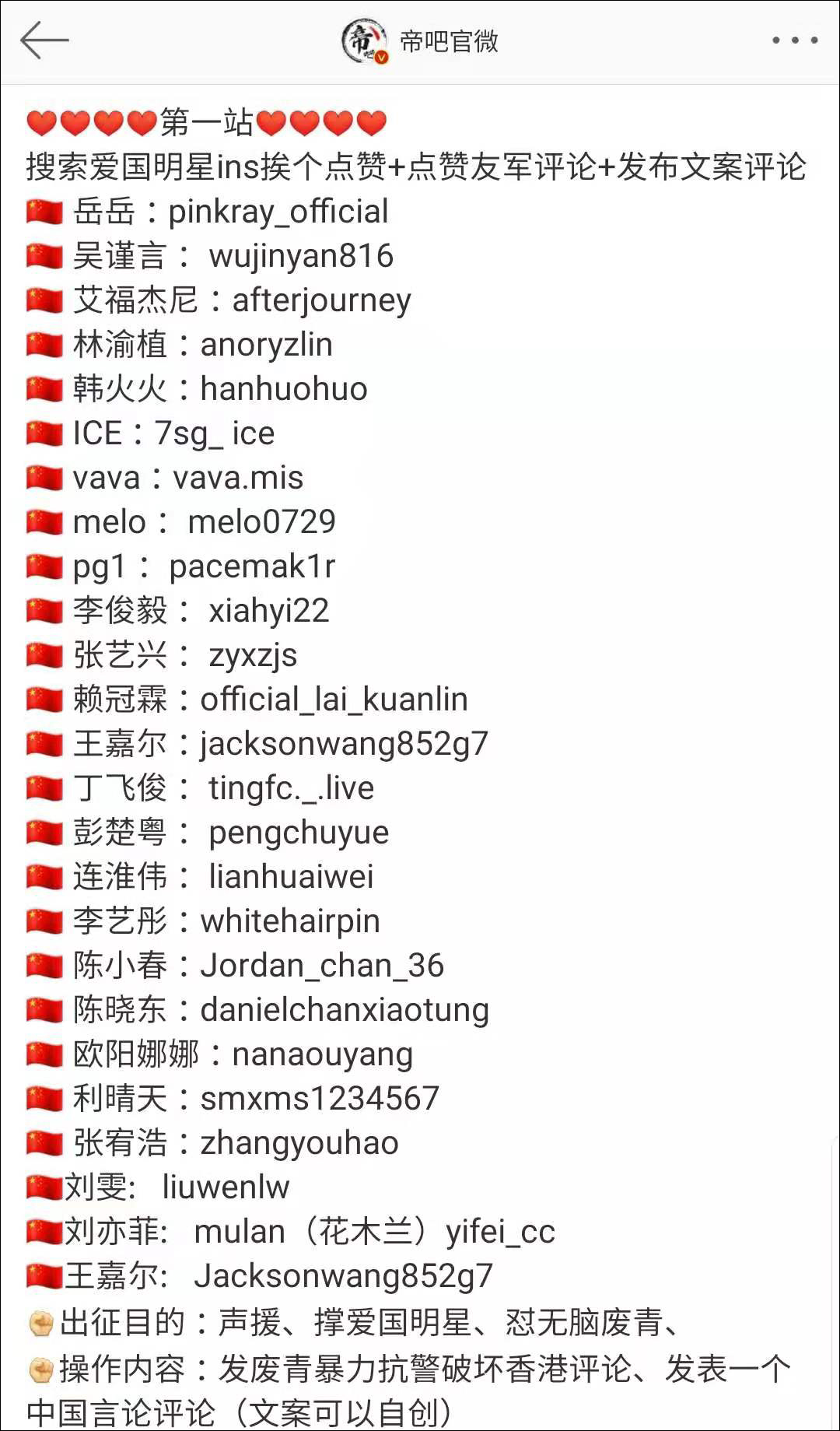 與2016年出征台灣類似,這次的帝吧出征也是從愛國明星被攻擊開始的。