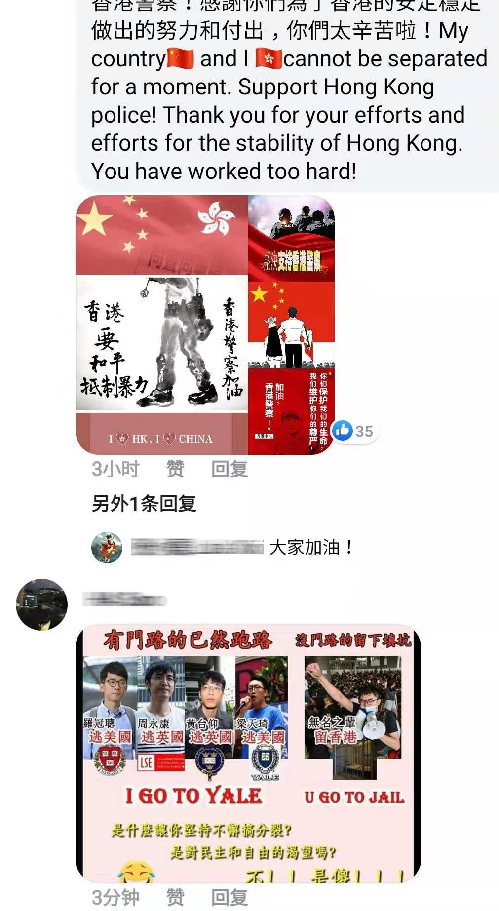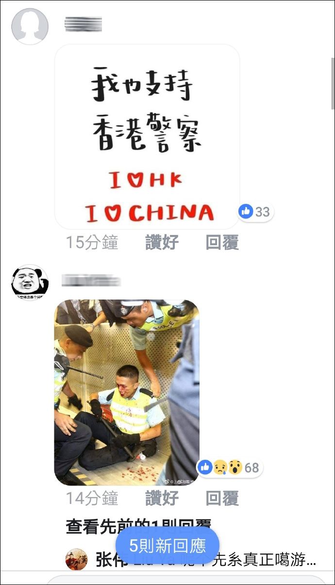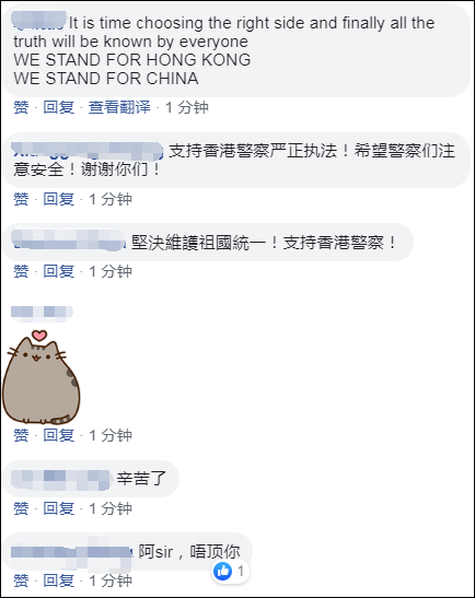 香港警察臉書主頁已經被撐警的愛國青年們刷屏!