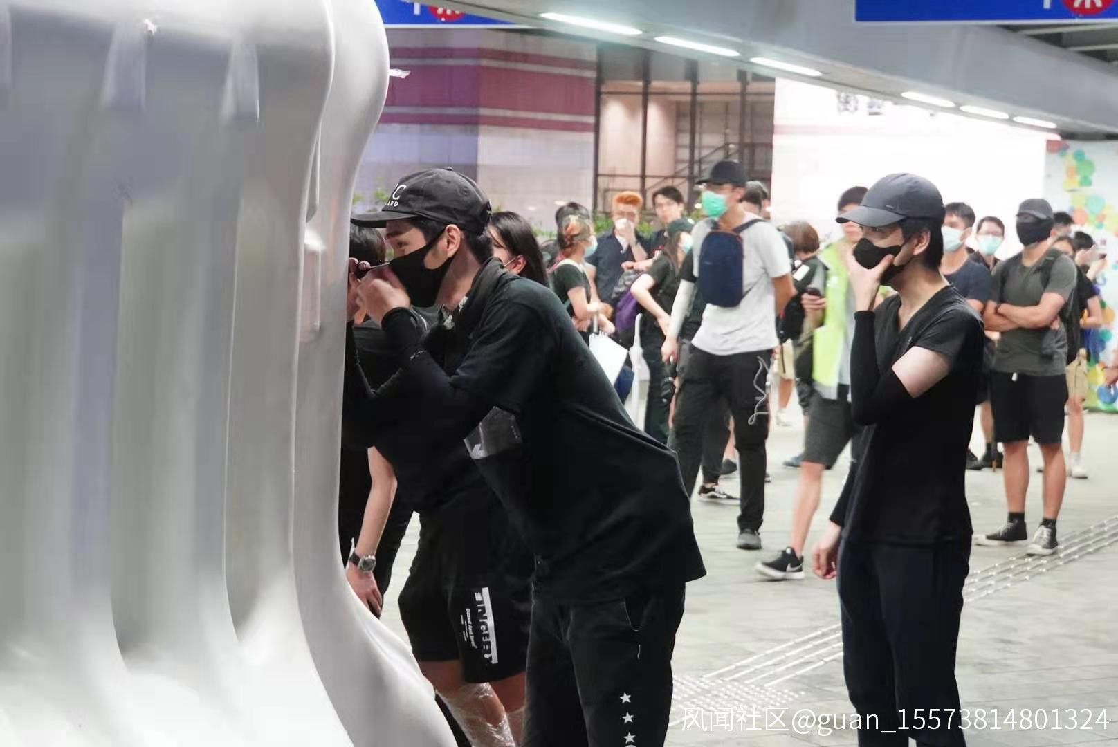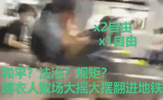△8月17日,黑衣人被警方驅散進入地鐵撤離時,大搖大擺輪流翻過柵欄進入地鐵