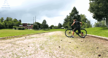 只要速度夠快,哪怕是在佈滿了石頭崎嶇不平的山間小路上,自行車也可以自如前行( 對,在無人的情況下 )。