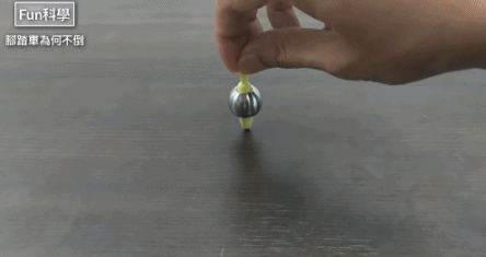 自行車當然也一樣了,只要輪胎的旋轉速度足夠高,不管車上是否有人操控,它們都會保持一個幾乎恆定的方向平移前進,( 這也是為什麼,速度越快的自行車突然轉向,越容易翻車 )
