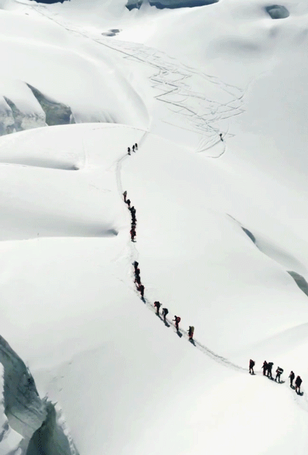 (請橫屏觀看,慕士塔格峯的冰川,攝影師@丁亮)