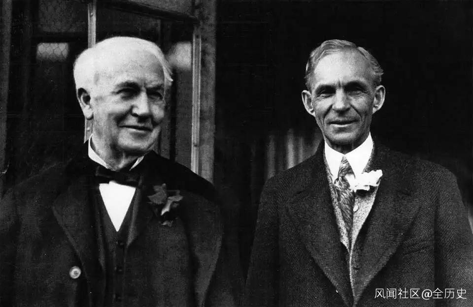 亨利福特比愛迪生小16歲,他小時候通過報紙瞭解到愛迪生的事蹟後,就開始了追星之路。終於在1896年,33歲的福特見到了仰慕已久的偶像,愛迪生對福特的汽車也大為讚賞。兩人惺惺相惜,共同語言頗多,也就是從那時起,他們開始了持續一生的友誼。不僅要買相鄰的房子,他們還經常一起和其他美國名人去野營。甚至當愛迪生年老需要坐輪椅時,福特也買了一輛輪椅,以便能陪愛迪生進行輪椅比賽。 愛迪生也曾經説過:“對於亨利福特,言語不足以表達我的感受,只有一個詞能完整的代表——他是我的朋友。”
