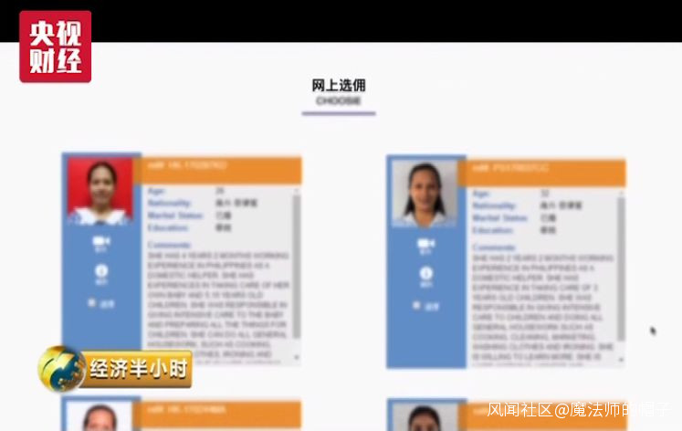 央視財經《經濟半小時》記者在網上與多家中介公司取得聯繫,很快,一些家政服務中介公司就發來了大量的“外籍保姆”的照片和視頻,她們有的來自菲律賓,有的來自馬來西亞。\
