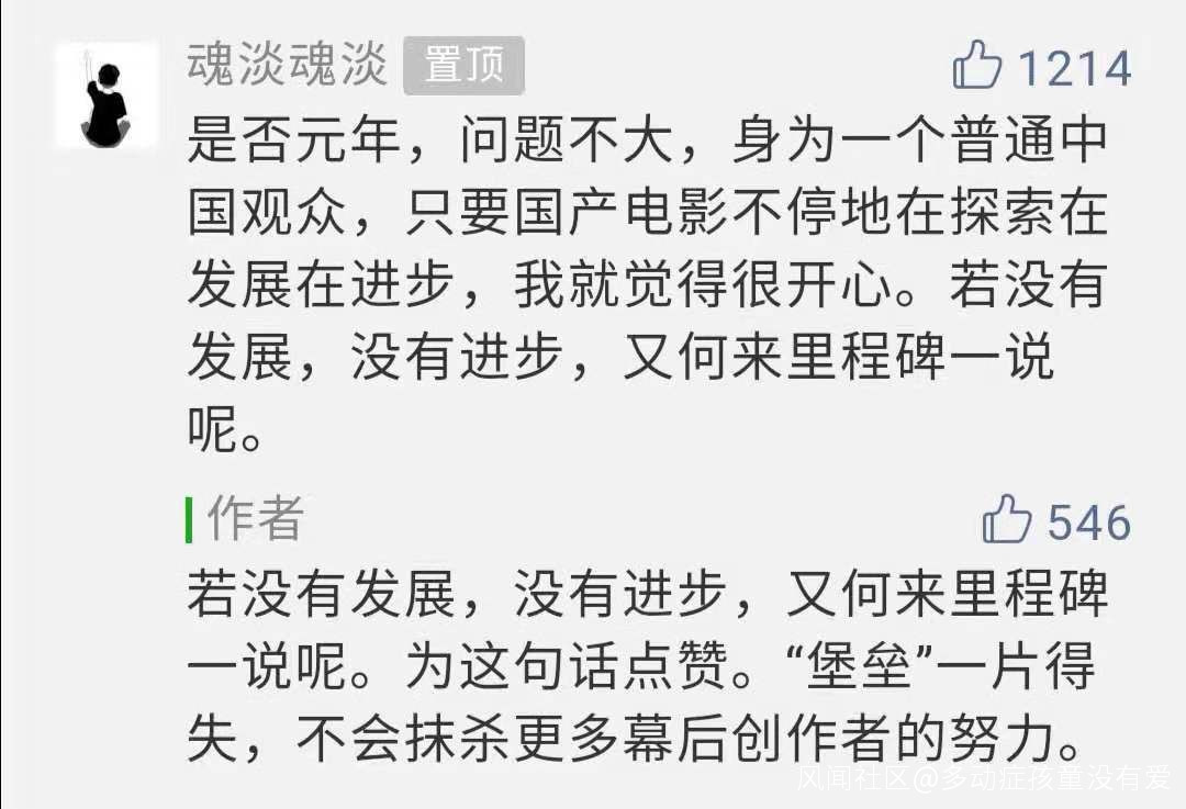若沒有發展,沒有進步,又何來里程碑一説呢。 為這句話點贊。 “堡壘”一片得失,不會抹殺更多幕後創作者的努力。