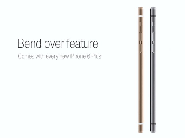 他們假借蘋果的名義,説這種彎曲根本不是什麼缺陷,而是特地的設計:iPhone6的機身可以在6°的範圍內自由彎曲,所以你可以“ 湧有 ”你中意的手機形狀。