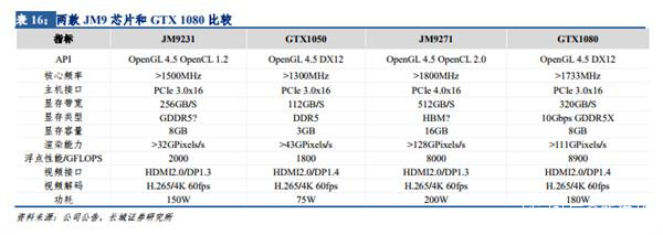 根據官方所列規格,JM9231 的性能可達到2016年中低端產品水平,而JM9271 核心頻率不低於1.8GHz,支持PCIe 4.0 x16,搭配16GB HBM顯存,帶寬512GB/s,浮點性能可達8TFLOPS,性能不低於GTX 1080的水平,可達到2017年底的高端顯卡的水平。