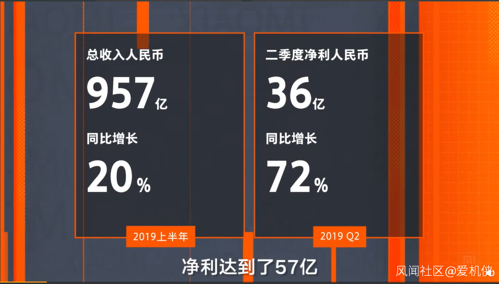 2019年上半年,小米集團財報出來了,總營收達到957.1億人民幣,增速達到20%,淨利潤達到57.2億,非常完美的答卷。