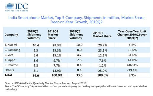 小米在海外市場的競爭優勢主要集中在中低收入人羣,以印度為例,據IDC報告顯示,2019上半年小米在印度智能手機出貨量連續8個季度第一。