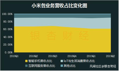 小米主營業務包括智能手機、IoT與生活消費以及互聯網增值三大主線,智能手機業務在2019Q2季度佔比達61.6%,為最大的業務,但增速相較往期已放緩許多。