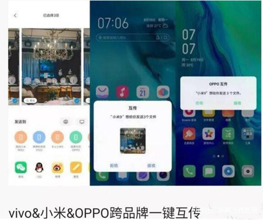 據稱,從此以後,小米、OPPO、vivo三家可以互聯互通了,用户可以實現跨品牌一鍵互傳,無需安裝第三方應用;支持圖片、音樂、視頻、應用軟件等多種格式文件;高速、穩定、無需流量。