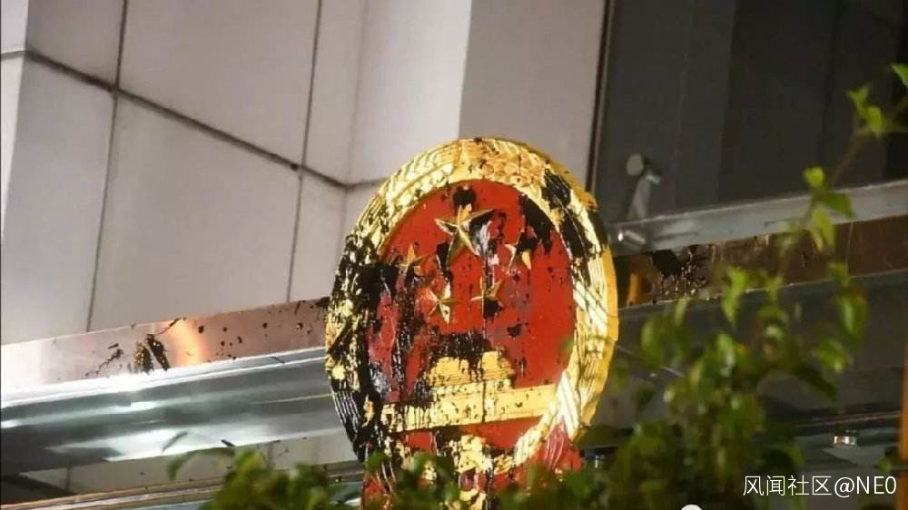 7月21日一些極端激進分子圍堵、衝擊香港中聯辦大樓,向國徽投擲雞蛋、墨水以及黑色油漆彈,污損莊嚴的國徽,又破壞中聯辦的安防設施,塗寫侮辱國家、民族尊嚴的字句,甚至狂言成立所謂“臨時立法會”。