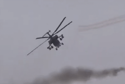 俄羅斯空天軍卡-28武裝直升機俯衝發射火箭彈後釋放熱焰彈撤離 圖源:ANNA通訊社
