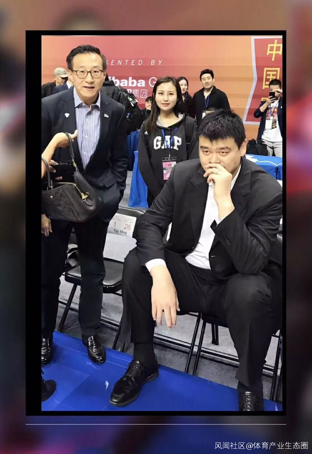 NCAA Pac-12中國賽上陳欣與姚明和蔡崇信的合影