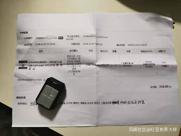 何詠梅的網購記錄顯示,她於2018年12月3日晚,花218元購買過一台追蹤器,“專門安裝在我老公的汽車上,不過一直沒發現什麼線索。”
