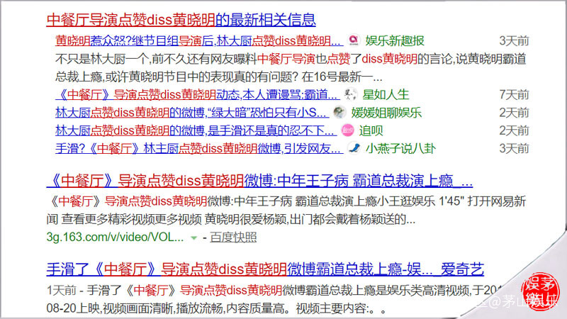 而在上游新聞記者對《中餐廳3》總導演王恬的採訪中,王恬還表示自己對真人秀是有底線的,“做真人秀,最重要的是要有真實的情感,不要裝。從選角到拍攝,再到後期製作,我一直要團隊強化真實感,呈現生活的本真狀態。”事實上呢?事實上,每一期節目播出後,馬上就有大量的營銷號在製造話題,引導輿論,比如清一色的吐槽秦海璐情商低、引導網友楊紫內涵趙麗穎、吐槽黃曉明,尤其是黑化黃曉明。
