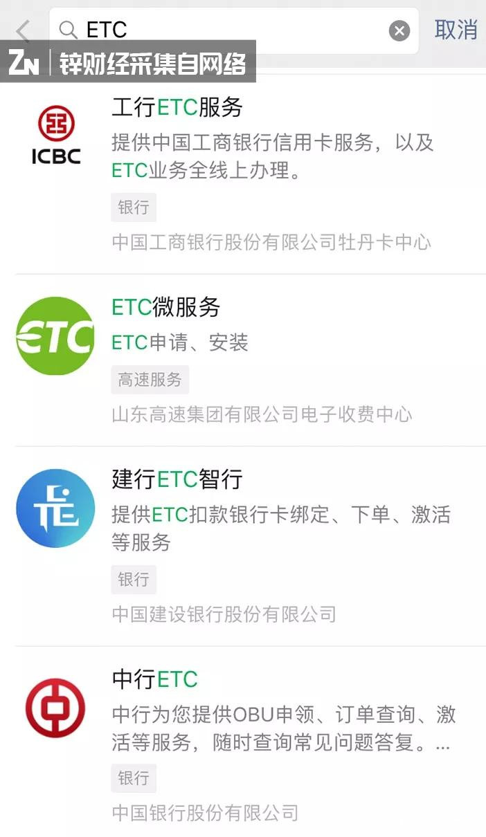 各大銀行都推出了ETC辦理小程序 圖片來源於微信小程序截圖