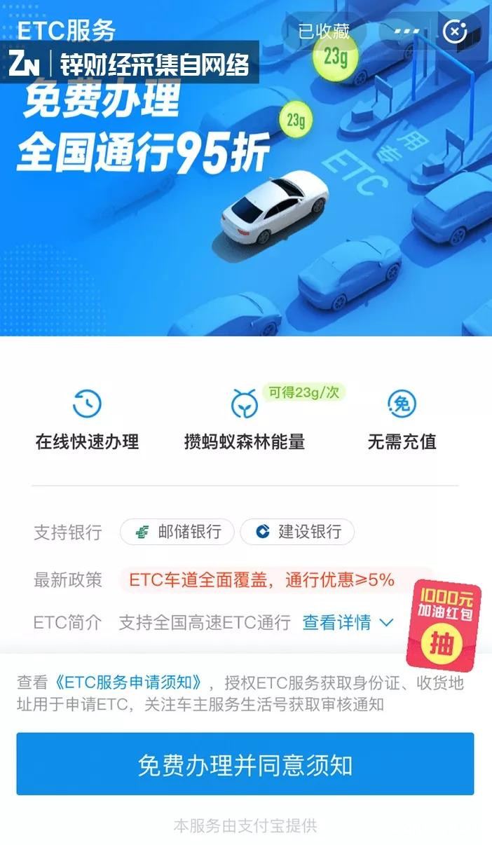 目前,支付寶已經接入郵儲銀行與建設銀行的ETC辦理入口。