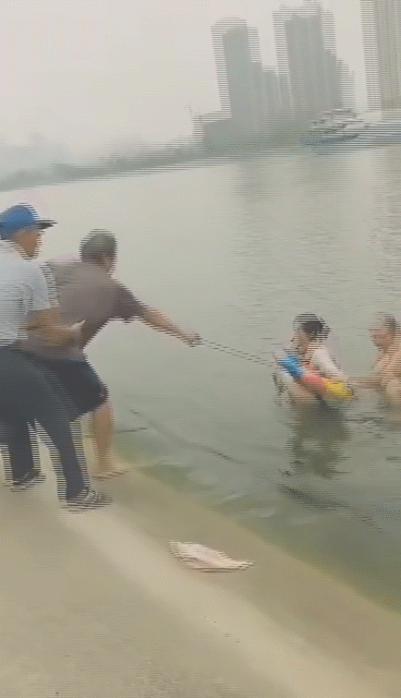 2019年7月5日韓家墩冬泳隊員齊心合力救起落水母子 長江救援志願隊供圖