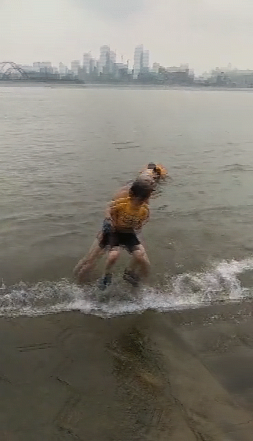 2019年6月8日武昌大堤口支隊隊員華景新從水中救起一名不慎從滑坡上落水的兒童 長江救援志願隊供圖