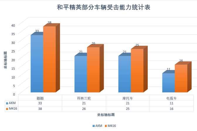 數據來源於對純粹車身部分的持續射擊(使用槍械單點模式;排除射擊輪胎、空槍等情況),我們統計了在完全命中的情況下,擊爆每類載具所需要的子彈數,測試中用AKM代表762槍族,M416代表556槍族。