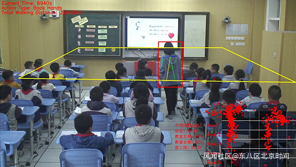 同時,系統也可採集教師相關課堂行為如面向學生、走動、音量、語速、教師走動軌跡等數據,基於此類數據,可做出適當的教學改進建議。
