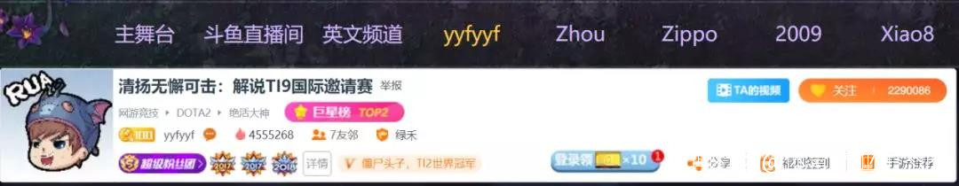 作為國內坐擁DOTA2頭部主播最多的平台之一,鬥魚為TI9定製了專題頁,彙集瞭如YYF、伍聲2009、陳堯Zhou等大主播,以及賽事官方流,為觀眾提供了方便快捷且多元化的觀賽選擇。