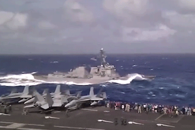 的萬噸大驅被海浪折騰)