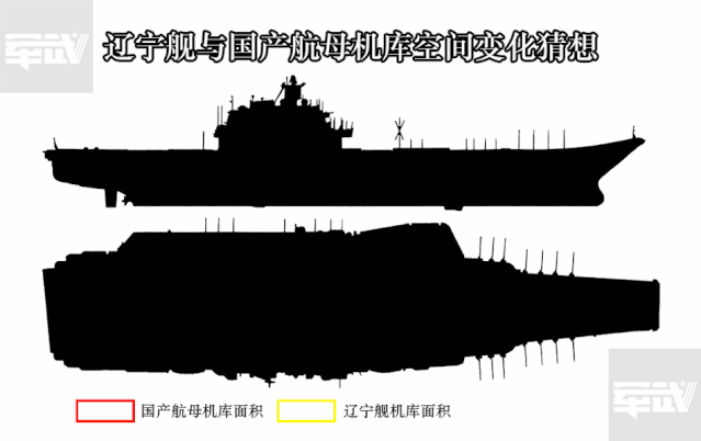 相比於改變載機尺寸和調整各機型搭配比例的做法,擴大機庫空間,實際上才是真正大幅提升航母載機數量的辦法。國產航母得益於自主建造,可以在一定程度上對“瓦良格”號的內部結構進行再設計,克服“瓦良格”號上原有的一些弊病。