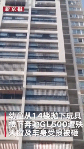 幼童高空拋一箱玩具砸壞奔馳,家長:車沒停好佔主要責任_風聞
