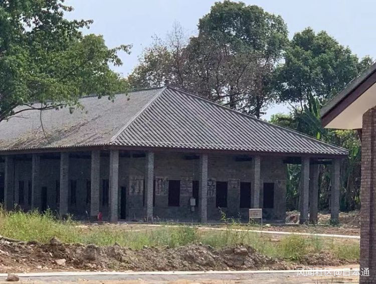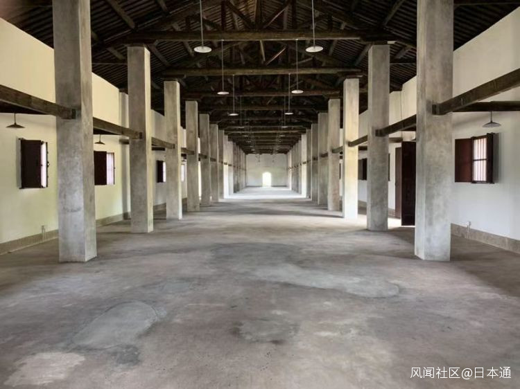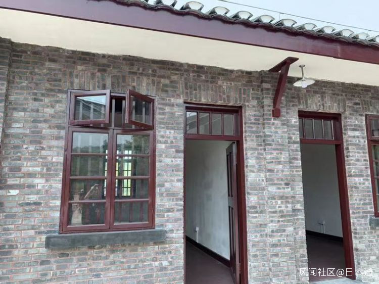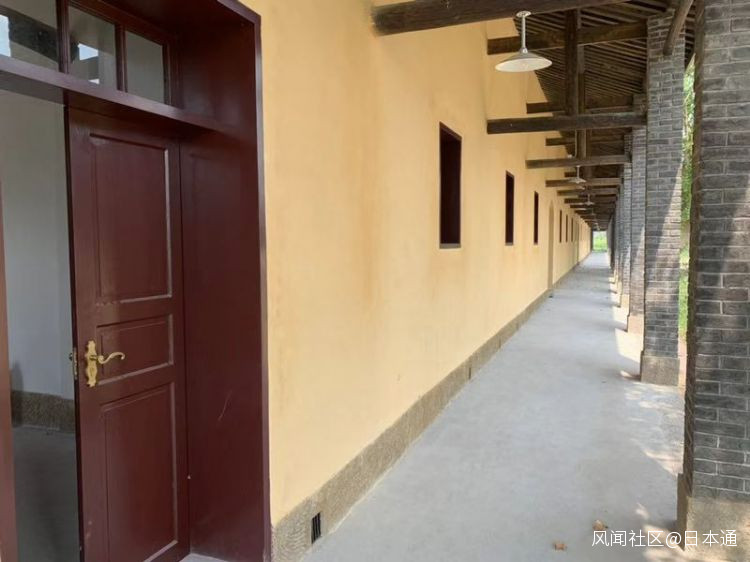 我們深一腳淺一腳地湧向這個遺址。只見諾大的一塊茅草叢生的地上,左側有一排黃色的迴廊房間,並且彎折向南方延伸成一排;中間有兩座灰磚的房屋,周圍藤葛盤繞,過道的一把椅子上擺放着一頂沐浴了不知多少歷史風雨的禮帽,似乎在默默地訴説着什麼。我轉身向右走去,看見錯落分佈的三座小院,有一棟正在做內裝修,有一棟小院格局已經安置停當,還有一棟小院似乎沒有裝修,外牆上還刷寫着如今看起來已經依稀難辨的“打倒美帝國主義”的巨幅標語。