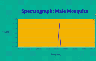 其實,伊蚊的公蚊子的體型比母蚊子小很多,所以它們的音高比母蚊子高,大概是G調,也就是600赫茲左右。