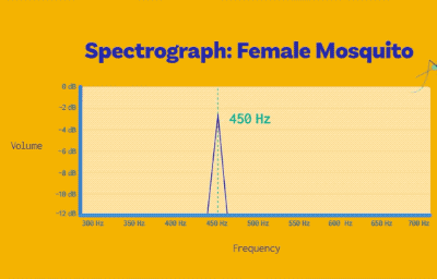 而母蚊子的體型比公蚊子大,所以它們的頻率要低一些,音高大概是D調,400-450赫茲左右。