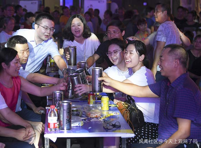 8月16日,消費者在重慶市渝北藝術歡享夜市集現場舉杯歡聚/新華社記者 王全超攝
