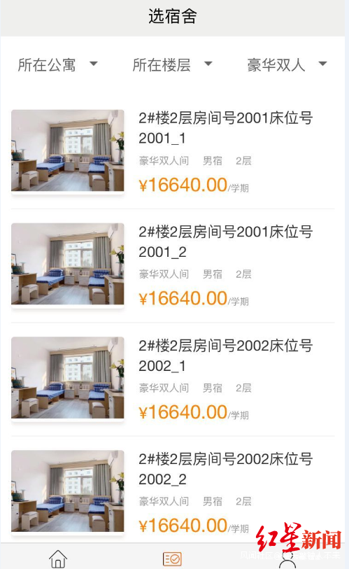 芝芝告訴紅星新聞,此前鵬遠APP上選房信息標註的價格,對應的信息為“每學期收費”,目前已經修改成為了“學年”。