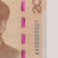 動圖來自央行官方微信。 2019年版20元、10元紙幣則採用光變鏤空開窗安全線,與2015年版100元紙幣類似,改變鈔票觀察角度,安全線顏色在紅色和綠色之間變化;透光觀察,20元紙幣可見“¥20”,10元紙幣可見“¥10”。