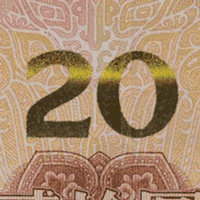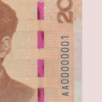 膠印後20元新版人民幣上的膠印底紋清晰亮麗。